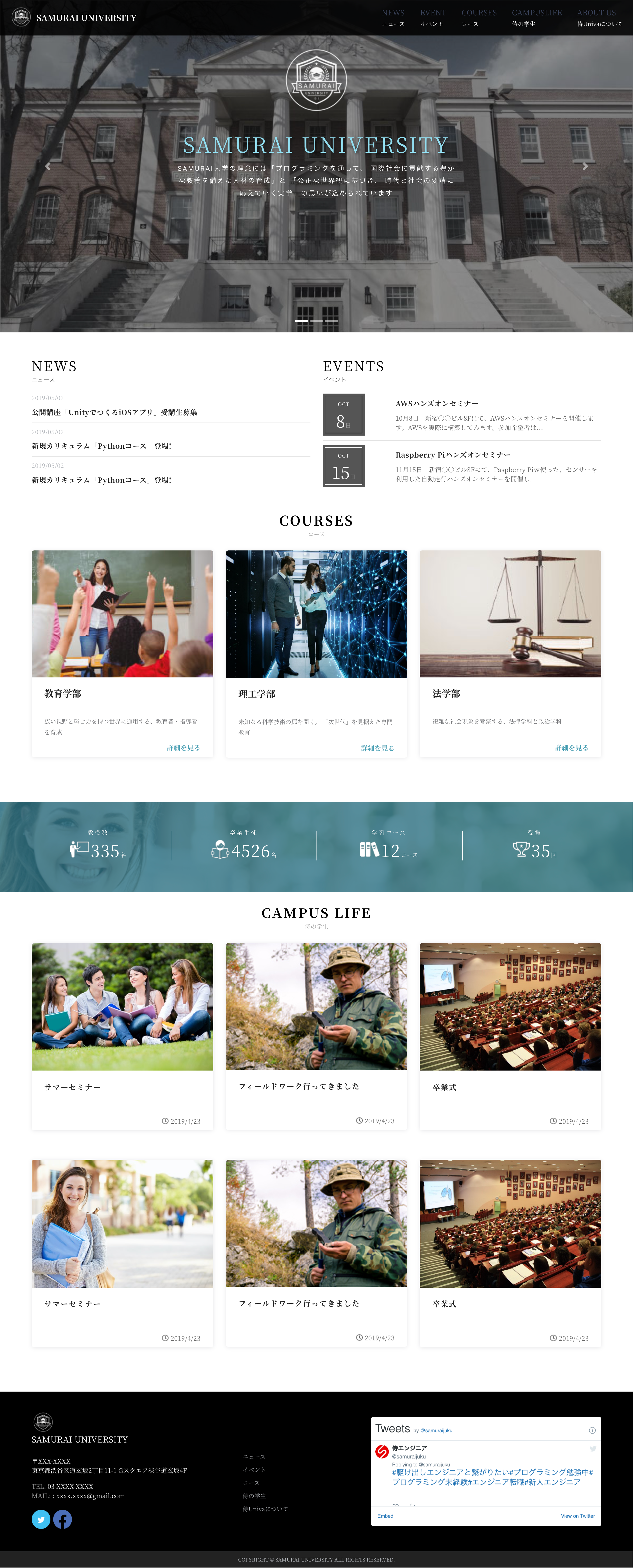 ブログのようにコンテンツを投稿できる機能を取り揃えています。またTwitterのフィードをサイト上に表示させることも可能です。